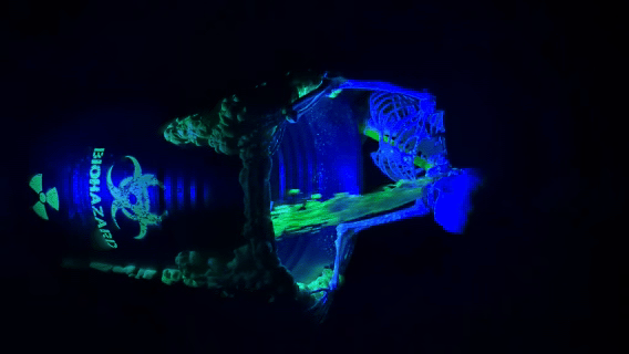 - 1 × Halloween Vomiting Skeleton with Black Light & Bucket, UV BLACK LIGHT, INSTRUCTIONS and GREEN FLUORESCENTLIQUID
