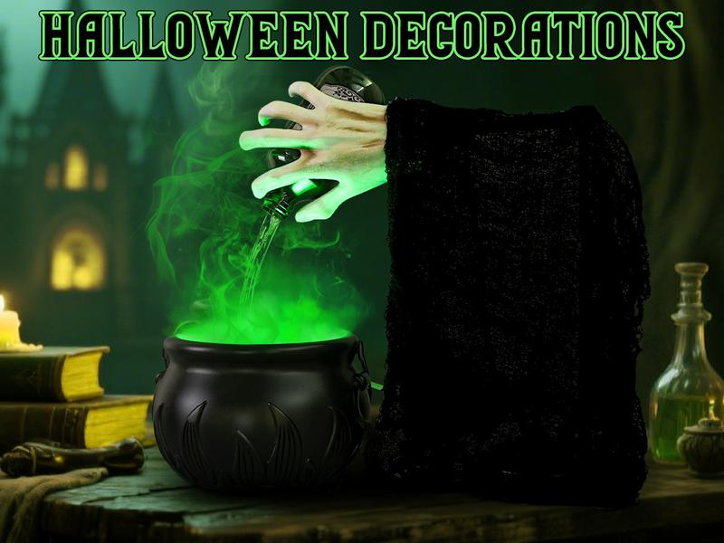 cauldron Halloween decor with eerie ambiance.